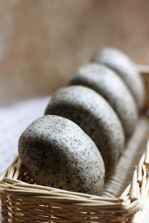 chiếc bánh bao mè đen trông giống những viên sỏi xinh xắn. Ảnh: Chiheba